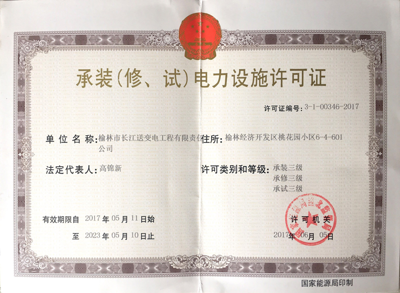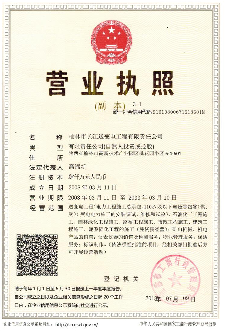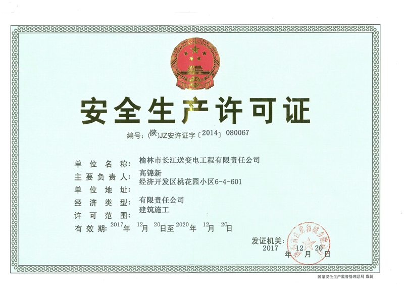 end-->安全生產許可證 -榆林市長江送變電工程有限責任公司">